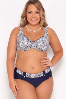Купальник Bahama 102-654/422703, модель 2017 года. Красивый узор бюстгальтера придает ему по настоящему летнее настроение. Данная модель подстраивается под индивидуальные особенности бюста любой женщины. На спине фиксируется металлической застежкой. Купальный комплект с классическими плавками темно-синего цвета. Модель соответствует высоким требованиям, предъявляемым к моделям для большой груди.