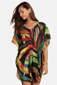 Пляжная туника серии Africa свободного кроя из очень воздушной ткани — шифона. Свободный крой не стесняет движений, обеспечивает полный комфорт и удобство ношения. Благодаря свойствам ткани туника красиво драпируется, не мнется и приятна на ощупь. Не имеет застежки, носится через голову с достаточно глубоким вырезом горловины. Рукав асимметричный (диагональный), длиной до локтя. Сделано в Польше.